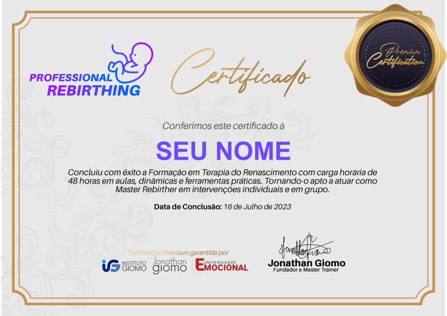 Após finalizar todas as aulas você receberá sua certificação. Esse é um passo importante que demonstra que você cumpriu todos os requisitos para se tornar um Renascedor.